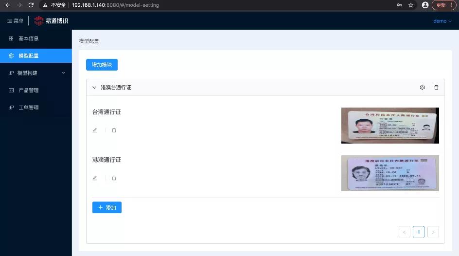 一个模型下可以定义任意数量的模块,单个模块下又可以包含数个版式。需要特别说明的是,模型的概念相当于一个统一的接口,通过固定的接口满足自己的识别需求。