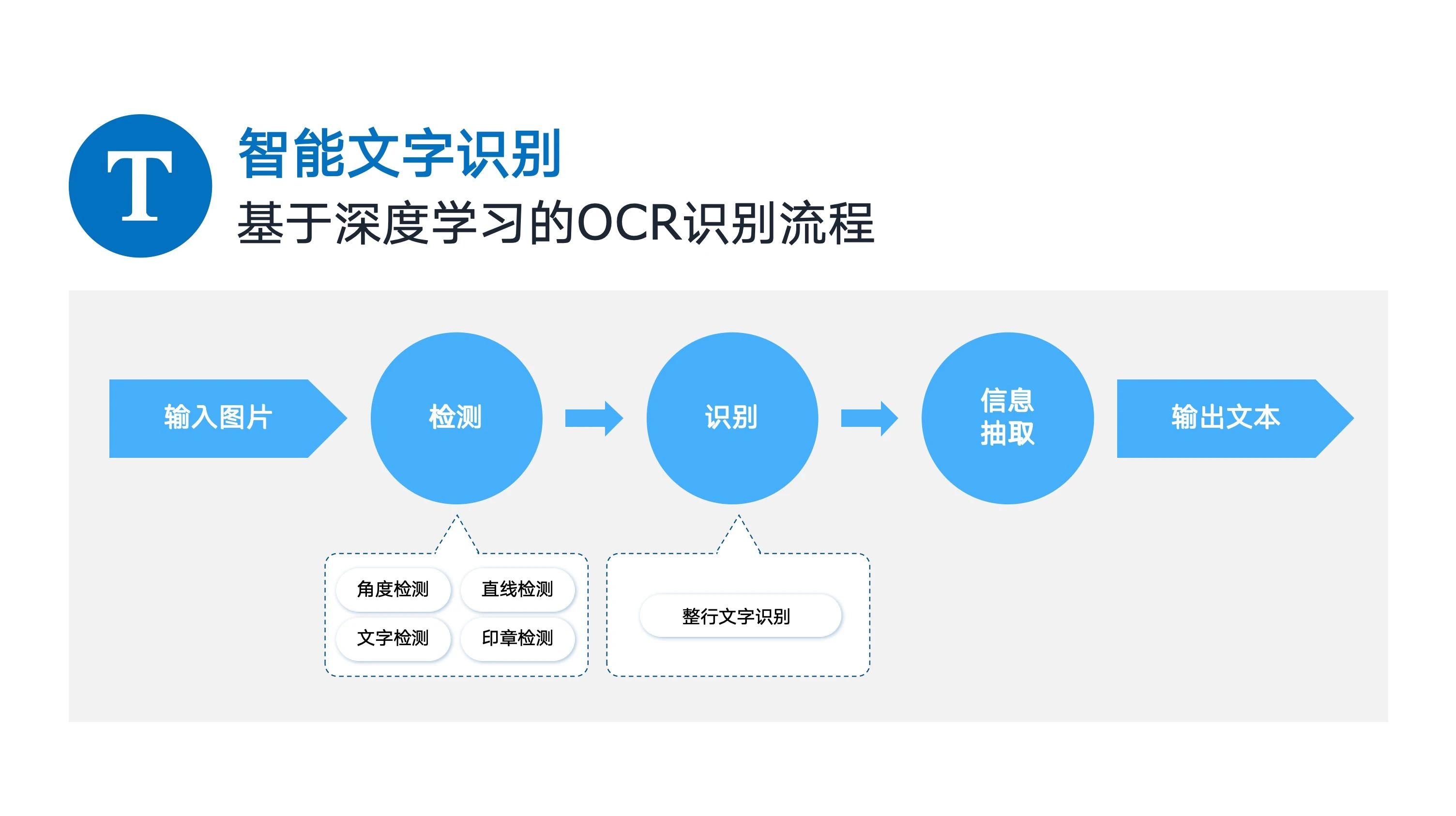 核心步骤包括文字检测、文字识别及信息抽取,每个步骤都由一个或多个深度学习模型完成。