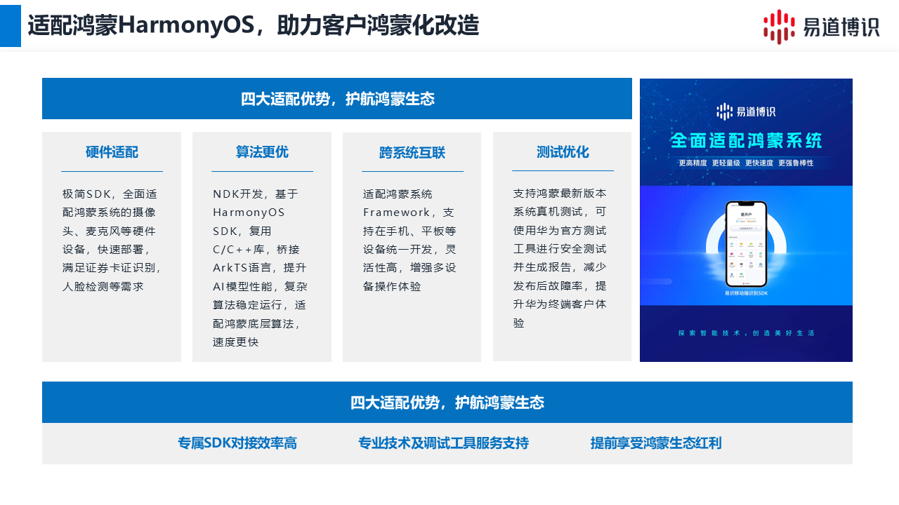 该产品采用轻量化设计架构,在保证端到端极速响应的前提下,有效降低了对App的资源占用与能耗。为响应国产化与信创安全需求,该SDK已全面适配鸿蒙系统。