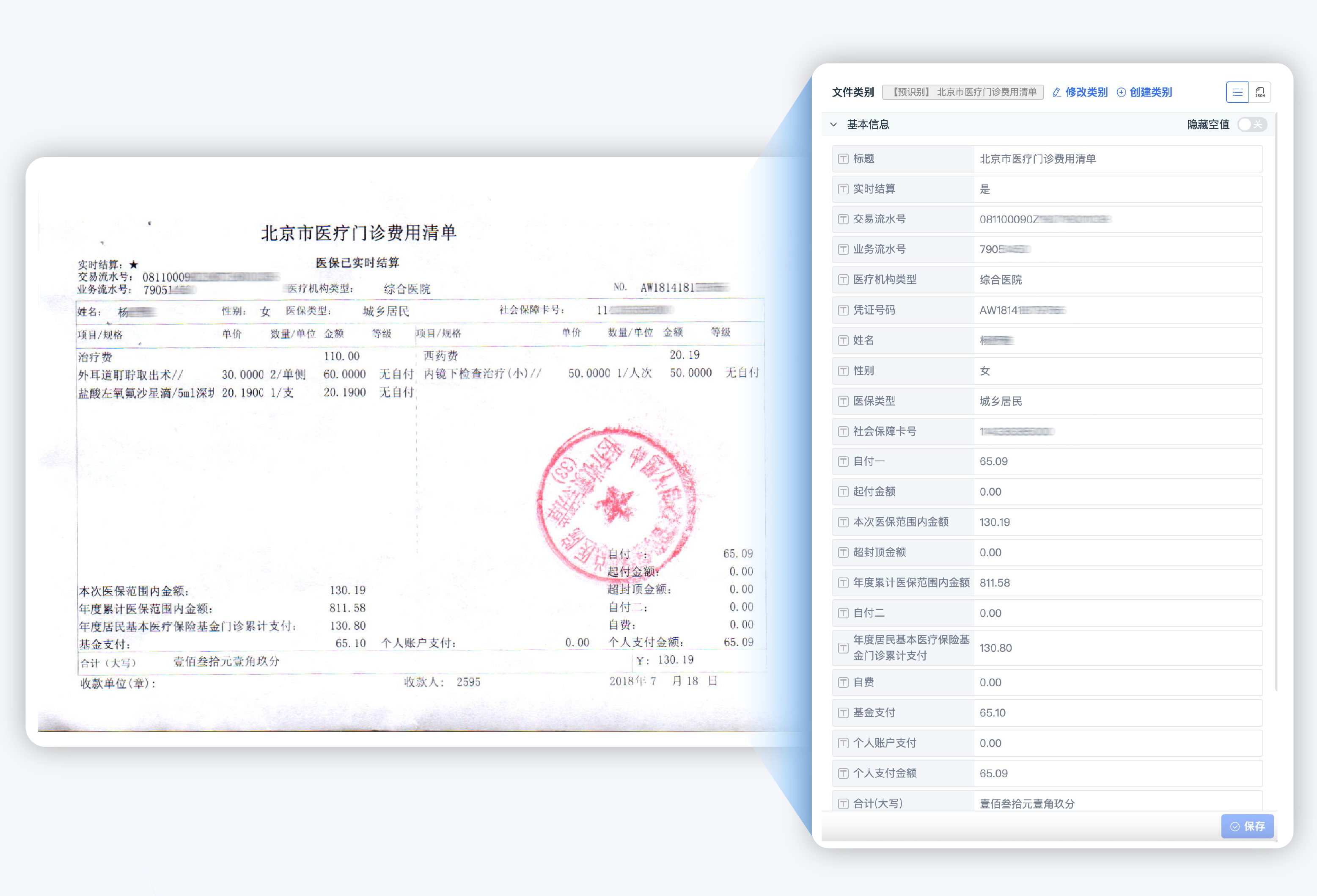 非结构化的纸质/影像单据转化为结构化数据,为其他业务提供可信的数据支撑。