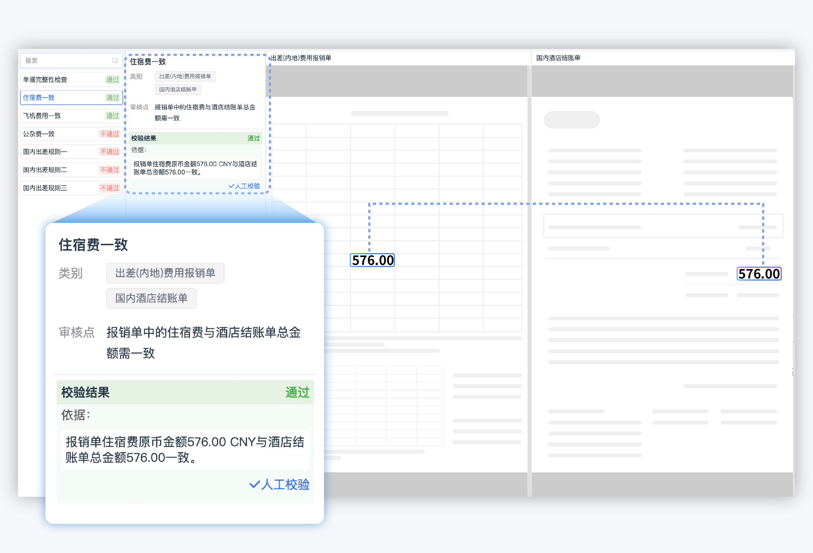 全链路数据溯源: 审核结果精确关联原始单据字段与触发规则,满足审计与合规要求。